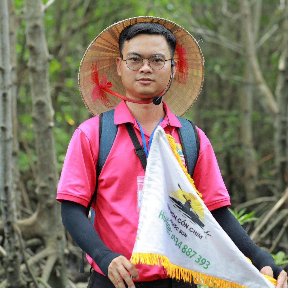 Anh Đặng Duy Phương trực tiếp làm hướng dẫn viên đưa du khách đi thăm vẻ đẹp của Cồn Chim |