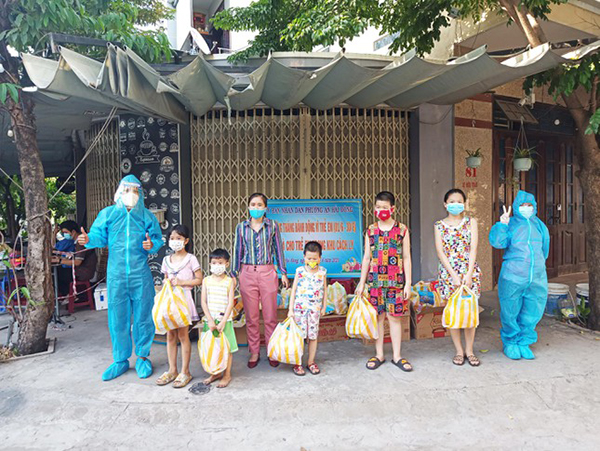 Hoạt động do phường An Hải Đông tổ chức giúp các em có một dịp 1/6 ý nghĩa trong khu cách ly. Những năm trước Quốc tế Thiếu nhi rất rộn ràng nhưng năm nay ngày hội thiếu nhi năm nay diễn ra trong tình hình cả nước đang quan tâm và gồng mình chống dịch. - Ảnh: Trung Trương |