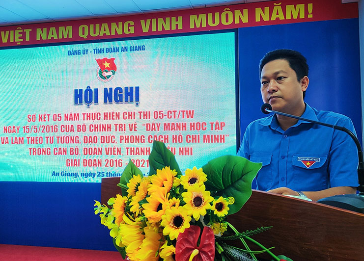 Tại Hội nghị, anh Lê Thanh Tiền - Ủy viên Ban Thường vụ, Trưởng Ban Tuyên giáo Tỉnh Đoàn thay mặt Ban Thường vụ Tỉnh Đoàn thông qua báo cáo tóm tắt kết quả 5 năm thực hiện Chỉ thị 05 của Bộ Chính trị, giai đoạn 2016 - 2021 trong các cấp Đoàn, Hội tỉnh An Giang: Thực hiện chỉ đạo, định hướng của Ban Bí thư Trung ương Đoàn, Ban Thường vụ Tỉnh ủy và Ban Tuyên giáo Tỉnh ủy An Giang, trong giai đoạn 2016 - 2021, Ban Thường vụ Tỉnh Đoàn đã chủ động ban hành 70 văn bản triển khai thực hiện Chỉ thị 05-CT/TW ngày 15/5/2016 của Bộ Chính trị về đẩy mạnh học tập và làm theo tư tưởng, đạo đức, phong cách Hồ Chí Minh trong các cấp bộ Đoàn, Hội tỉnh An Giang; chỉ đạo cho Hội Liên hiệp thanh niên Việt Nam tỉnh, Hội đồng Đội, Nhà Thiếu nhi An Giang, Trung tâm Hỗ trợ thanh niên khởi nghiệp tỉnh An Giang và các cấp Đoàn, Hội trong tỉnh xây dựng và lồng ghép triển khai các nội dung về học tập và làm theo tư tưởng, đạo đức, phong cách Hồ Chí Minh trong các chương trình, kế hoạch chuyên đề hằng năm, phù hợp với từng đối tượng thanh thiếu nhi. Bên cạnh đó, Tỉnh Đoàn còn phối hợp Đài Phát thanh - Truyền hình An Giang, Báo An Giang kịp thời tuyên truyền các chủ trương, đường lối, chính sách của địa phương cũng như những thông tin cần thiết về hoạt động thanh niên thông qua việc phối hợp thực hiện chuyên mục “Truyền hình thanh niên” trên sóng truyền hình định kỳ hằng tháng; thường xuyên chuyển tải các nội dung học tập và làm theo tư tưởng, đạo đức, phong cách Hồ Chí Minh thông qua tài liệu sinh hoạt Chi Đoàn hằng tháng, fanpage và Cổng thông tin điện tử Tỉnh Đoàn An Giang.