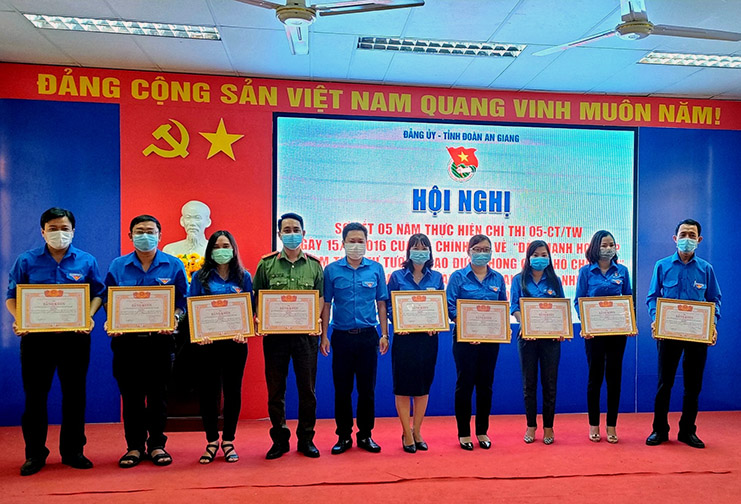 Các cấp Đoàn tăng cường công tác tuyên truyền với nhiều nội dung đa dạng, sinh động, hấp dẫn thông qua các hoạt động diễn đàn, tọa đàm, các hội thi, hội diễn, sinh hoạt Chi Đoàn, Chi Hội định kỳ, du khảo về nguồn, giao lưu văn hóa văn nghệ, thể dục thể thao, hội trại, họp mặt, tọa đàm, nói chuyện truyền thống... kết quả các cấp Đoàn trong toàn tỉnh tổ chức được 6.120 cuộc, với trên 336.720 lượt ĐVTN, HSSV tham gia, đồng thời tiếp tục duy trì hoạt động 1.789 tủ sách “Học tập và làm theo lời Bác” với 31.116 đầu sách, báo, tạp chí thanh niên, Bản tin thanh niên, Đặc san tuổi trẻ... Các cơ sở Đoàn trong tỉnh đã tổ chức cho cán bộ, ĐVTN đăng ký và thực hiện các nội dung Chỉ thị 05-CT/TW gắn với 05 tiêu chí rèn luyện, 10 tiêu chí hành động của Chương trình “Rèn luyện Ðoàn viên trong thời kỳ mới”, qua đó, góp phần định hướng hình thành những phẩm chất đạo đức lối sống gắn với các giá trị tư tưởng, tấm gương đạo đức, phong cách Hồ Chí Minh. Từ tháng 3/2019 đến tháng 5/2021, Ban Thường vụ Tỉnh Đoàn đã giới thiệu cho Ban Tuyên giáo Tỉnh ủy An Giang 90 gương thanh niên tiên tiến để tuyên truyền và nhân rộng.