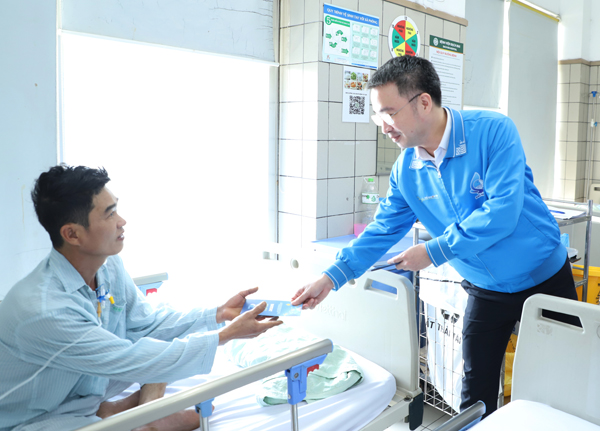Anh Nguyễn Tường Lâm thăm hỏi, tặng quà bệnh nhân điều trị tại Bệnh viện Bạch Mai. |