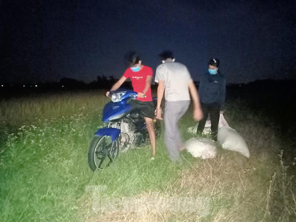 Thanh niên tình nguyện xã Đông Lỗ chở thóc trong đêm về cho người dân bị cách ly. |