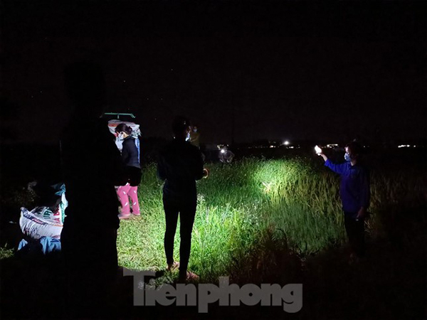 Đoàn viên huyện Tân Yên thắp đèn thu hoạch lúa cho người dân bị cách ly. |