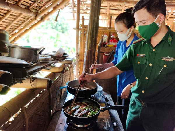Đoàn viên thanh niên chế biến chuẩn bị bữa cơm. |