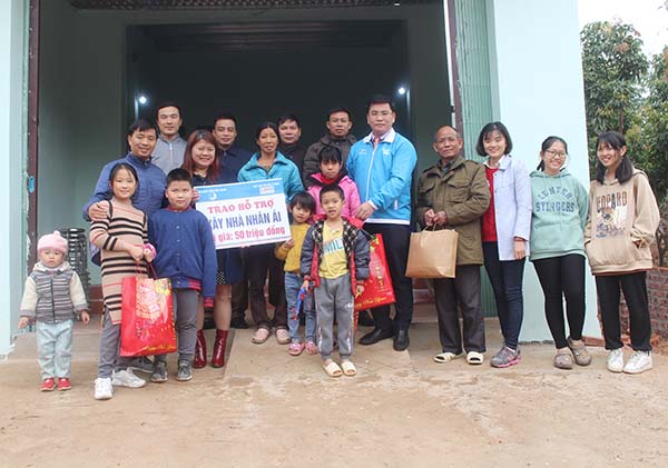 Trao kinh phí xây nhà và quà Tết cho gia đình chị Hà. |