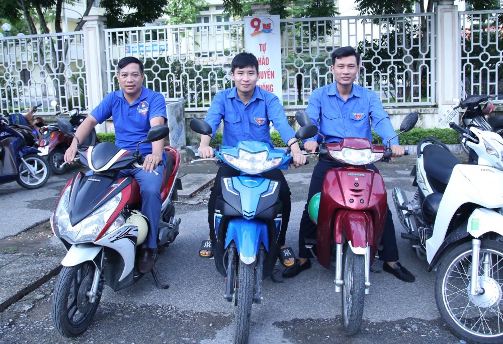 Đội hình xe ôm miễn phí phục vụ thí sinh và người nhà thí sinh tại điểm thi Trường THPT chuyên Lam Sơn