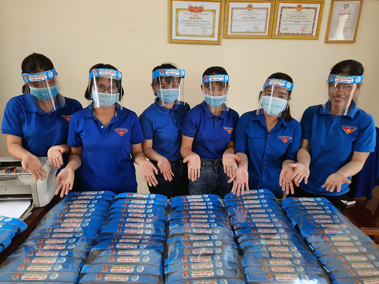 Đông đảo ĐVTN huyện Bù Đăng, tỉnh Bình Phước tích cực tham gia làm mũ chống giọt bắn trao tặng các lực lượng tuyến đầu phòng, chống dịch Covid-19