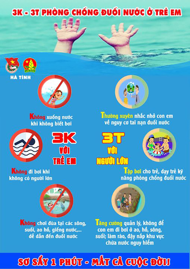 Thông điệp “3K - 3T phòng chống đuối nước ở trẻ em”