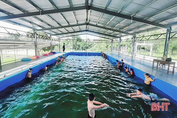 Một lớp dạy bơi miễn phí tại huyện Đức Thọ. Ảnh tư liệu
