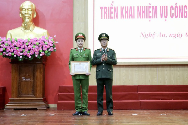 Đại úy Phạm Thanh Nam - Phó Đội trưởng Phòng Cảnh sát phòng cháy chữa cháy và Cứu nạn cứu hộ, Công an tỉnh Nghệ An nhận Bằng khen của Ban Thường vụ Tỉnh ủy Nghệ An tặng đảng viên hoàn thành xuất sắc nhiệm vụ tiêu biểu 5 năm liền (2018 - 2022). |