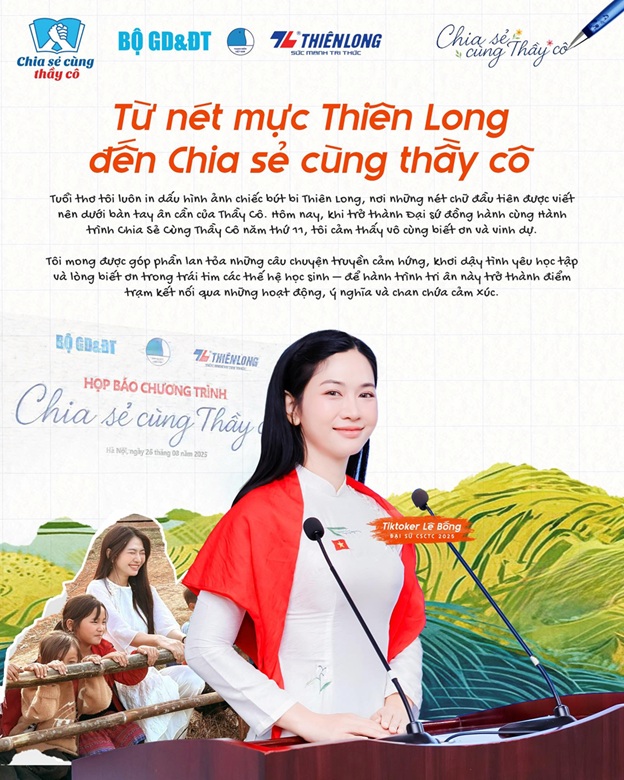 Chương trình “Chia sẻ cùng thầy cô” do Trung ương Hội Liên hiệp Thanh niên Việt Nam phối hợp với Bộ Giáo dục và Đào tạo và Tập đoàn Thiên Long tổ chức từ năm 2015 đến nay. Qua hơn 10 năm tổ chức chương trình đã tuyên dương 576 thầy giáo, cô giáo có nhiều đóng góp cho sự nghiệp giáo dục.