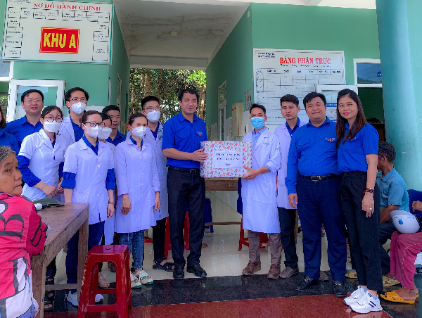 Trao quà cho y, bác sĩ trẻ tình nguyện. |