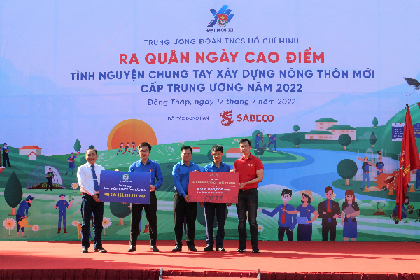 Cũng nhân dịp này, Tổng Công ty Cổ phần Bia - Rượu - Nước giải khát Sài Gòn (SABECO) đã trao bảng tượng trưng trao tặng cho Trung ương Đoàn 34 tuyến đường thắp sáng đường quê trị giá 4 tỷ 250 triệu đồng và 30 sân chơi cộng đồng “Nâng bước thể thao” trị giá 4 tỷ 500 triệu đồng.