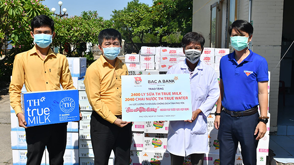 Theo đó, đoàn đã trao tặng 6.000 chai nước suối; 250 chai nước sát khuẩn 330ml; 200kg trái cây các loại hỗ trợ người dân trong khu vực cách ly - phong tỏa, lực lượng chức năng đang làm nhiệm vụ phòng chống dịch Covid-19 tại địa bàn xã An Hòa Hải (huyện Tuy An); tặng 250 chai nước sát khuẩn 330ml hỗ trợ khu vực cách ly - phong tỏa trên địa bàn tỉnh; tặng 2.500 hộp sữa và 1.000 chai nước uống cho lực lượng tuyến đầu chống dịch tỉnh Phú Yên; tặng 1200 hộp mì và 2.500 cây xúc xích cho Bệnh viện Dã chiến điều trị bệnh nhân Covid-19 tỉnh Phú Yên.