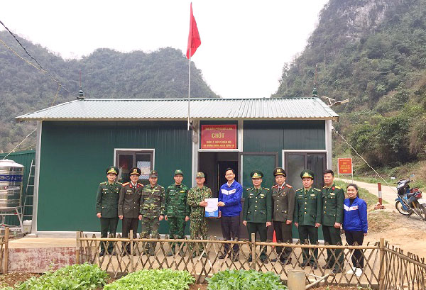 CLB Tuổi trẻ 4 lực lượng thăm hỏi tặng quà Đồn Biên phòng Đức Long huyện Thạch An. |