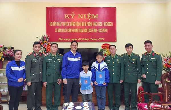 Trao 02 suất học bổng cho Con nuôi đồn Biên phòng. |