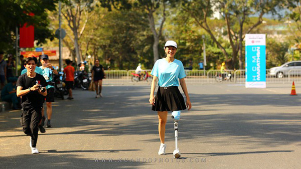 Với người bình thường chạy vài km đã khó huống chi phải mang chân giả chạy trên đường đến 5 km là vô cùng khó khăn nhưng cô vẫn mạnh mẽ vượt qua. "Lúc chạy đến hơn nửa đoạn đường là đuối sức, muốn dừng lại bỏ cuộc nhưng nghĩ đến những người khuyết tật, người nhiễm chất độc da cam nên mình đi tiếp, đó chính là động lực để mình hoàn thành cự ly 5km", cô Tâm nhớ lại.