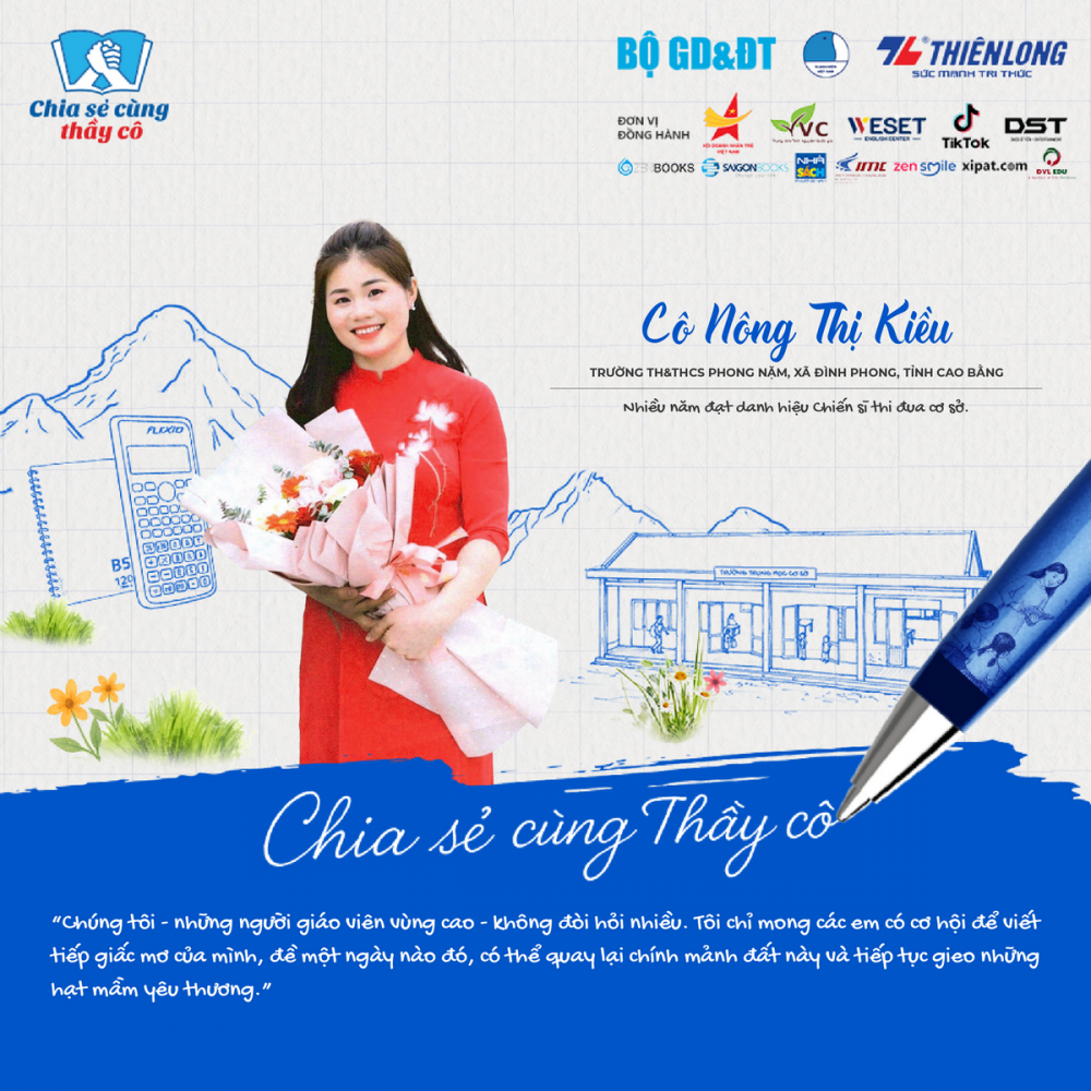 Cô Kiều luôn tâm niệm rằng: “Người thầy giỏi không chỉ dạy học sinh biết, mà còn giúp các em biết cách sống, biết yêu thương và biết ước mơ.” Chính vì thế, cô luôn đổi mới phương pháp giảng dạy, tìm tòi, sáng tạo để mỗi tiết học đều trở thành một hành trình khám phá thú vị. Cô mong rằng, trong tương lai, học sinh vùng cao cũng sẽ được tiếp cận những phương pháp học tập hiện đại, được học trong những ngôi trường kiên cố, có đủ sách vở, thiết bị và những bữa ăn ấm no.