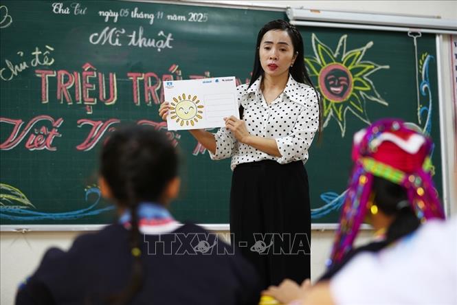 Cô giáo Đinh Lệ Thu trong một buổi dạy cho học sinh cho học sinh vùng cao