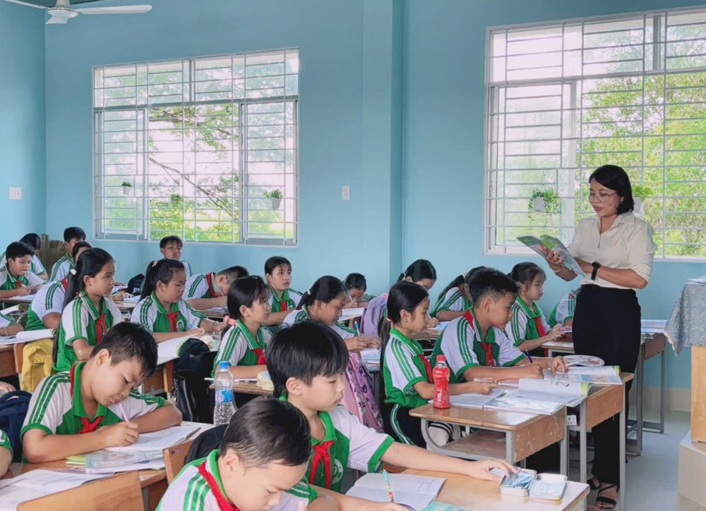 Cô không chỉ dạy chữ mà còn dạy cách sống, cách yêu thương và sẻ chia. Năm học trước, lớp cô có một em học sinh mồ côi cha, mẹ đi làm ăn xa, sống cùng bà ngoại tuổi đã cao. Em lặng lẽ, ít nói, kết quả học tập sa sút và có nguy cơ nghỉ học. Cô đến thăm nhà, động viên, hỗ trợ thêm cho em một ít chi phí mua tập vở, đồng phục. Cô phát động phong trào “Chia sẻ yêu thương” trong lớp, để các bạn cùng giúp đỡ, cùng học nhóm. Dần dần, em học sinh ấy đã thay đổi, tự tin hơn, tích cực hơn, kết quả học tập tiến bộ rõ rệt. “Khi ta gieo hạt bằng tình thương, chắc chắn sẽ nảy mầm bằng hạnh phúc” – cô nói bằng giọng nhẹ như gió.