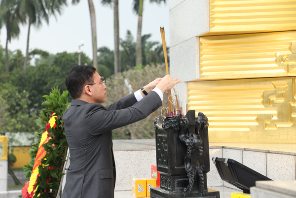 Các đại biểu dâng hương tại Đài tưởng niệm các Anh hùng, liệt sĩ trên đường Bắc Sơn (Hà Nội). |