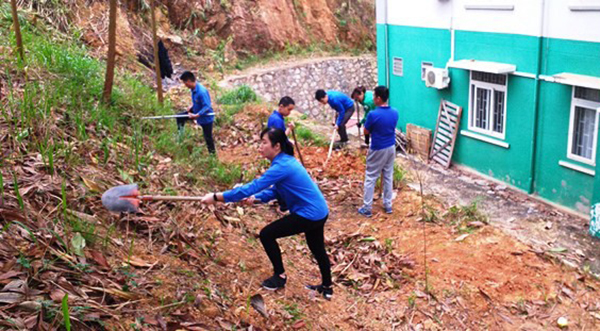 Đoàn viên thanh niên tham gia vệ sinh môi trường. |