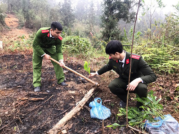 Đoàn thanh niên Công an tỉnh phối hợp với Thành Đoàn tổ chức trồng cây xanh tại xã Hưng Đạo, Thành phố Cao Bằng. |