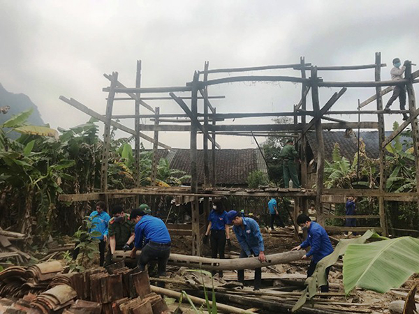 Đoàn viên thanh niên huyện Phục Hòa hỗ trợ nhân dân dựng nhà ở. |