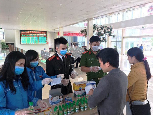 Đoàn thanh niên Công an tỉnh phối hợp với Thành Đoàn tổ chức phát khẩu trang miễn phí tại Bến xe khách Thành phố Cao Bằng. |