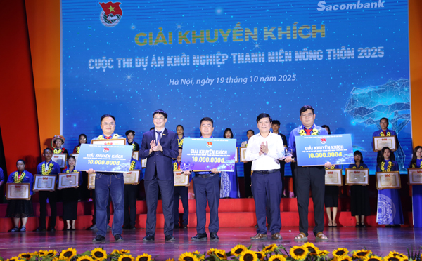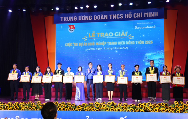 Chiều nay 19/10, tại Hà Nội, Trung ương Đoàn TNCS Hồ Chí Minh phối hợp với Ngân hàng Sacombank tổ chức Lễ trao giải Cuộc thi Dự án khởi nghiệp thanh niên nông thôn năm 2025.