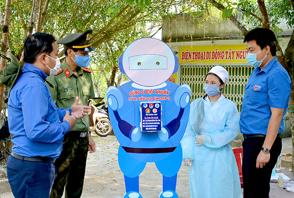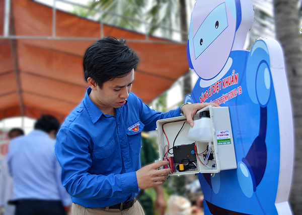 Anh Lê Văn Vin, Phó Bí thư Tỉnh Đoàn Quảng Ngãi, Chủ tịch Hội LHTN Việt Nam tỉnh cho biết, Tỉnh Đoàn Quảng Ngãi hỗ trợ cho anh Võ Trường Tiến, trường Đại học Phạm Văn Đồng hoàn thiện mô hình rô bốt “Dũng sĩ diệt khuẩn” và chibi “Chiến sĩ diệt khuẩn”. Hiện nay các cấp bộ Đoàn trong tỉnh đang đặt hàng 20 sản phẩm để phân bổ tại các vị trí trọng yếu, có nhiều người qua lại trên địa bàn tỉnh.
