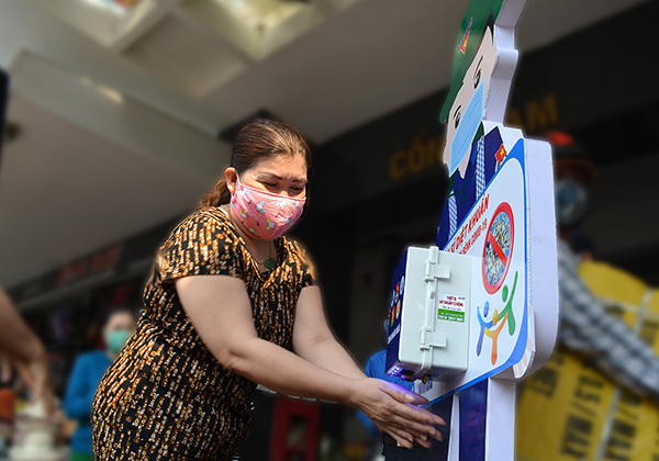 Sản phẩm máy sát khuẩn được anh Võ Trường Tiến thực hiện trên cơ sở khi phát hiện một số điểm bất cập khi sử dụng bình dung dịch sát khuẩn. Anh cho biết, muốn sát khuẩn, nhiều người dùng tay ấn vòi xịt để lấy dung dịch sát khuẩn hoặc cầm bình xịt lên tay để sử dụng có nguy cơ lây nhiễm chéo khi vỏ bình xịt bị nhiễm khuẩn. Với sản phẩm này, chỉ cần đưa tay vào dưới máy diệt khuẩn cách 15-20cm, máy sẽ tự động xịt lượng dung dịch dạng sương nhất định vào tay tránh thừa dung dịch gây lãng phí.