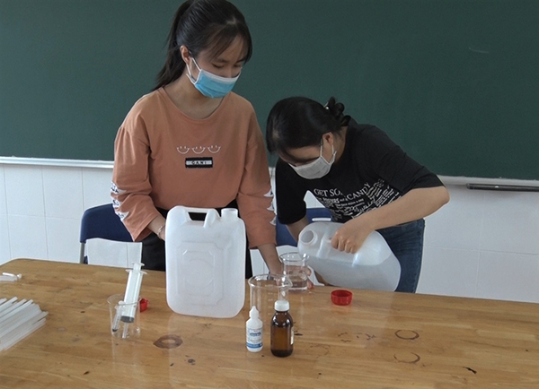 ĐVTN Trường THPT Mạc Đĩnh Chi huyện Chư Pah điều chế nước rửa tay sát khuẩn. |
