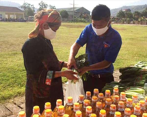 Ðoàn viên thanh niên trao tặng quà cho người có hoàn cảnh khó khăn. |