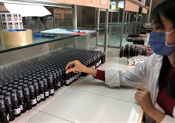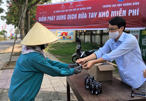 Hàng nghìn chai dung dịch rửa tay khô do bộ môn hóa, Trường ĐH Quảng Bình chế tạo đã đến với cộng đồng. Ảnh: C.T.V |