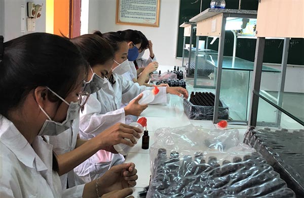 Ngày nào cũng có 3 - 4 giảng viên miệt mài pha chế. Tổng cộng nhóm giảng viên với sự trợ giúp của các sinh viên tình nguyện viên đã sản xuất được gần 5.000 chai và được phát miễn phí tại các điểm công cộng, cũng như chuyển đến các khu cách ly tập trung và tặng cho một số đơn vị Đoàn làm tình nguyện.