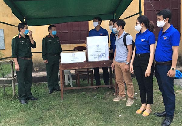 Và trao tặng nước rửa tay khô cho các khu cách ly. Ảnh: C.T.V |