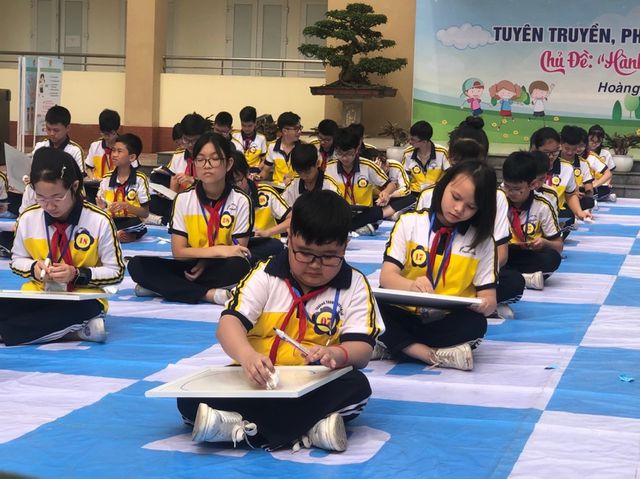 Các em học sinh hào hứng tham gia cuộc thi Rung chuông vàng với chủ đề “Phòng chống bạo lực và xâm hại trẻ em” |