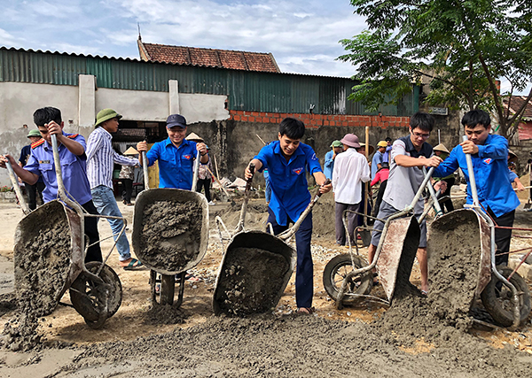 ĐVTN tham gia hỗ trợ xây dựng nông thôn mới tại xã Thạch Đồng (Thành phố Hà Tĩnh). |
