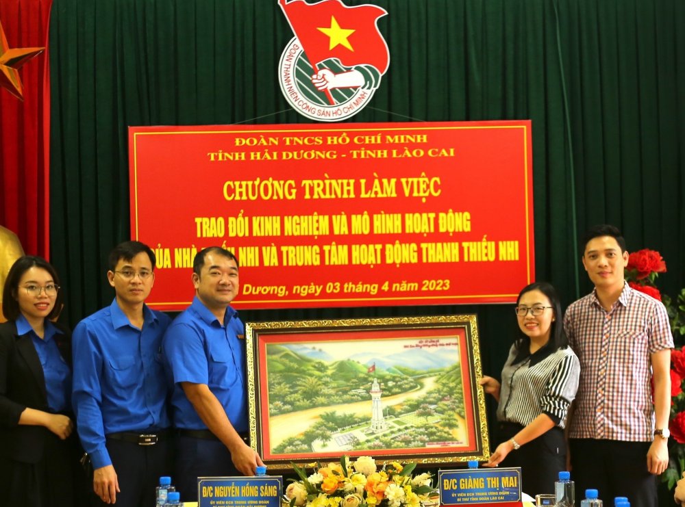 Đại diện đoàn công tác của Tỉnh đoàn Lào Cai, đồng chí Giàng Thị Mai cũng trao đổi về những vấn đề thuận lợi, khó khăn của Trung tâm hoạt động Thanh thiếu nhi tỉnh Lào Cai. Trung tâm được thành lập từ năm 1996, đã trải qua nhiều lần đổi tên, hiện đang xuống cấp nghiêm trọng. Trong giai đoạn 2023-2025, được sự quan tâm, đầu tư của tỉnh, Trung tâm sẽ được thiết kế và xây mới.