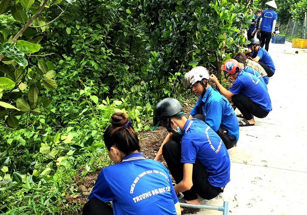 Đoàn viên thanh niên và học sinh sinh viên đang thực hiện công trình. |