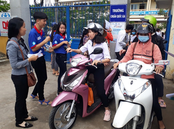Theo đó, các cấp bộ Đoàn đã tổ chức thành lập các đội thanh niên tình nguyện và triển khai vận động các nguồn hỗ trợ, tổ chức nhiều hoạt động thiết thực và ý nghĩa cho các thí sinh tham gia kỳ thi THPT Quốc gia năm nay. Trong đó, Ban Thường vụ Huyện đoàn Long Mỹ thành lập 02 đội thanh niên tình nguyện dọn dẹp vệ sinh điểm thi, đưa rước thí sinh, cấp phát thức ăn và nước uống cho các thí sinh có hoàn cảnh khó khăn trong suốt quá trình diễn ra kỳ thi tốt nghiệp THPT Quốc gia; đồng thời trao đổi kinh nghiệm ôn thi và làm bài, động viên các em vững tâm hoàn thành bài thi thật tốt.