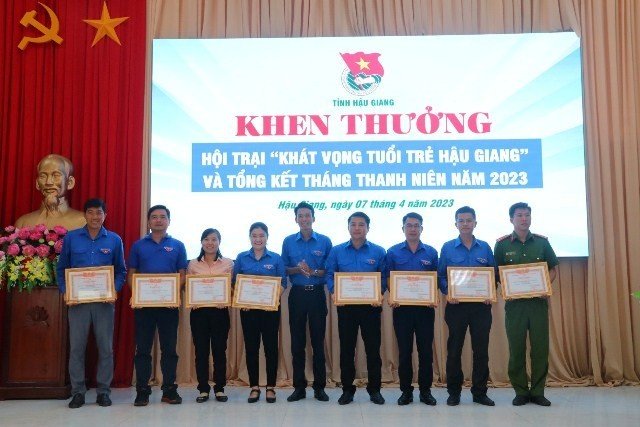 Nhân dịp Hội nghị đồng chí Bùi Hữu Lộc, Bí thư Tỉnh đoàn - Chủ tịch Hội đồng Đội tỉnh đã trao Cờ thi đua xuất sắc dẫn đầu 3 năm liền của Trung ương Đoàn cho tập thể Ban Thường vụ Thành đoàn Vị Thanh; Ban Thường vụ Tỉnh đoàn đã tổng kết, xếp hạng, khen thưởng kết quả phát động thi đua Tháng Thanh niên và Hội trại “Khát vọng Tuổi trẻ Hậu Giang” cho 12 tập thể. Trong đó, Tháng Thanh niên: Khối huyện, thị, thành đoàn 04 tập thể, giải nhất: Thị đoàn Long Mỹ; Thành đoàn Ngã Bảy; giải ba: Thành đoàn Vị Thanh và Huyện đoàn Châu Thành; khối Đoàn trực thuộc 02 tập thể giải nhất: Đoàn Thanh niên Công an tỉnh; giải nhì: Đoàn khối các Cơ quan và Doanh nghiệp tỉnh. Về Hội trại giải nhất: Thị đoàn Long Mỹ; giải nhì: Huyện đoàn Phụng Hiệp và đồng giải ba: Thành đoàn Ngã Bảy; Huyện đoàn Long Mỹ và Đoàn thanh niên Công an tỉnh. Ngoài ra, tặng 03 bằng khen của Ban Thường vụ tỉnh đoàn cho 02 cá nhân và 01 tập thể có thành tích xuất sắc trong công tác truyền thống Tháng Thanh niên năm 2023.