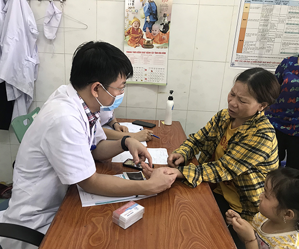 Các bác sỹ trong CLB thầy thuốc trẻ tỉnh, huyện Yên Thủy khám bệnh cho nhân dân. |