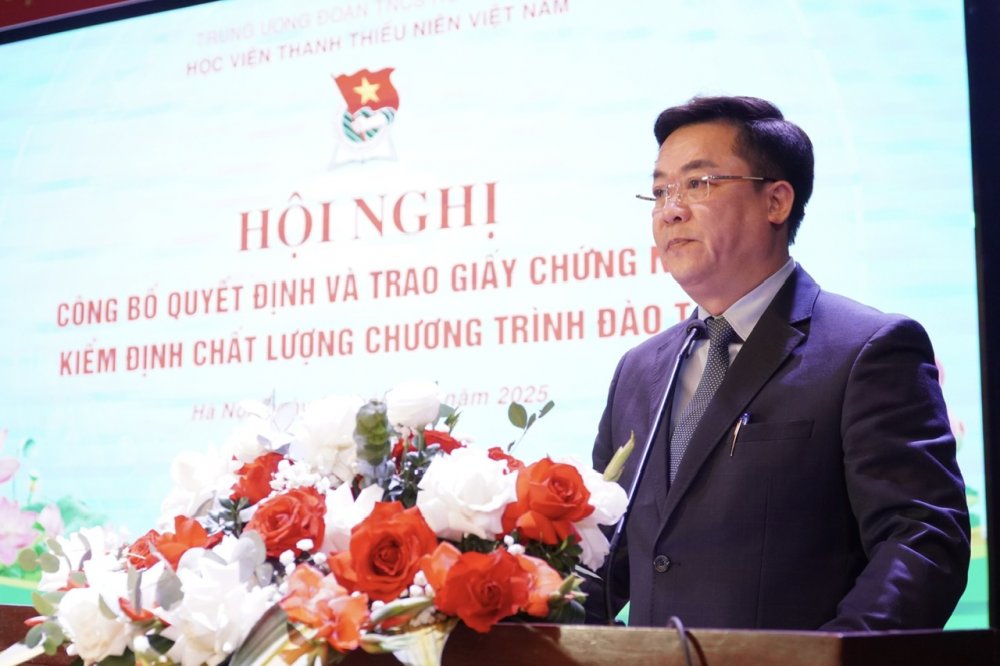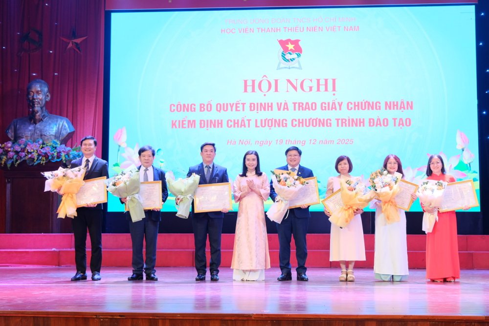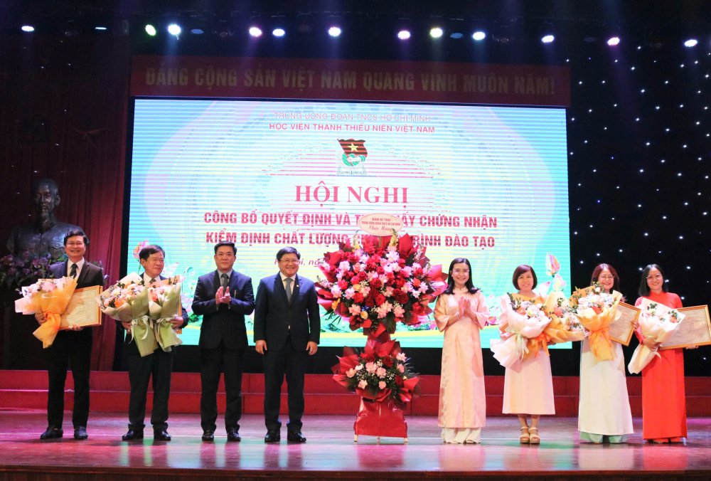 Tại Hội nghị, TS. Lê Mỹ Phong, Phó Cục trưởng Cục Quản lý chất lượng, Bộ Giáo dục và Đào tạo và TS. Nguyễn Văn Đường, Giám đốc Trung tâm kiểm định chất lượng giáo dục Thăng Long đã trao chứng nhận kiểm định chất lượng 07 chương trình đào tạo hệ đại học cho Học viện Thanh thiếu niên Việt Nam. Bí thư T.Ư Đoàn, Chủ tịch Hội đồng Đội T.Ư Nguyễn Phạm Duy Trang cũng tặng hoa chúc mừng Học viện.