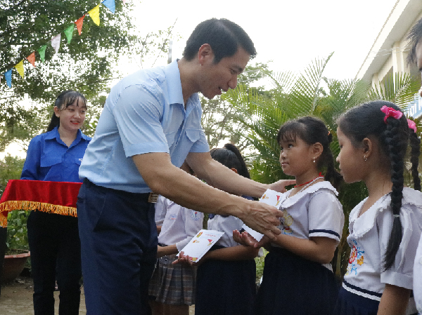 Anh Nguyễn Ngọc Lương, Bí thư Trung ương Đoàn tặng quà cho thiếu nhi. |