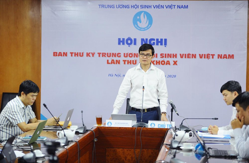 Phát biểu khai mạc hội nghị, anh Bùi Quang Huy, Bí thư T.Ư Đoàn, Chủ tịch T.Ư Hội Sinh viên Việt Nam nhấn mạnh Hội nghị sẽ tập trung cho ý kiến về 8 nội dung: Báo cáo công tác Hội và phong trào sinh viên năm học 2019 – 2020; chương trình công tác Hội và phong trào sinh viên năm 2020; chương trình công tác kiểm tra năm học 2020 – 2021; kế hoạch chào mừng 90 năm thành lập Đoàn; về một số giải pháp của Hội Sinh viên Việt Nam trong hỗ trợ sinh viên sáng tạo, nghiên cứu khoa học; kiện toàn nhân sự.