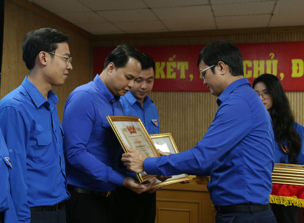 Anh Bùi Quang Huy, Ủy viên dự khuyết Trung ương Đảng, Bí thư thứ nhất Trung ương Đoàn trao Bằng khen cho các tập thể. |