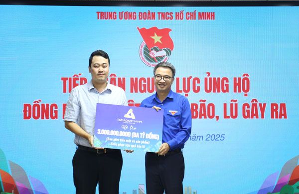 Cùng với đó, Trung ương Đoàn cũng tiếp nhận nguồn lực từ Tập đoàn Tân Á Đại Thành ủng hộ người dân tại các tỉnh, thành chịu thiệt hại do bão lũ gây ra với tổng trị giá 03 tỷ đồng.