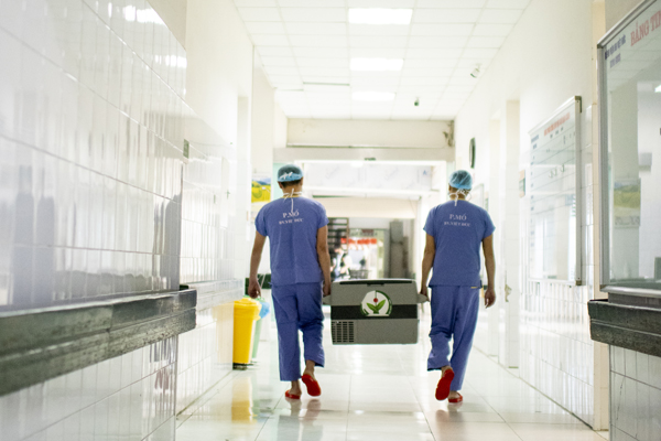 Các y, bác sĩ khẩn trương vận chuyển tạng đến nơi ghép. |